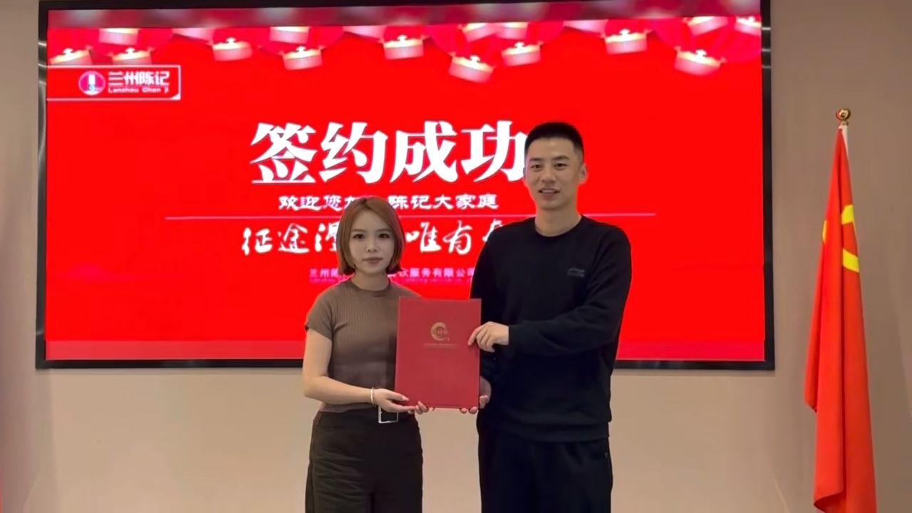 近日,宁波陈总专程莅临兰州陈记牛肉面总部,进行加盟签约。在品牌负责人的陪同下,陈总深入了解了陈记从一碗汤、一勺辣油,到一套标准化出餐流程背后的匠心坚守。从后厨操作规范、核心调料配比,到门店运营管理模式、品牌文化建设,陈总对陈记成熟的标准化体系、稳定的产品口感,以及背后所蕴含的投资价值给予了高度评价与充分肯定。